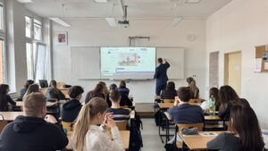 Součástí besedy byla i diskuse, během které měli žáci možnost pokládat otázky.