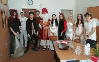 I v letošním školním roce nás přišel navštívit sv. Mikuláš se svou družinou (studenti oktávy).