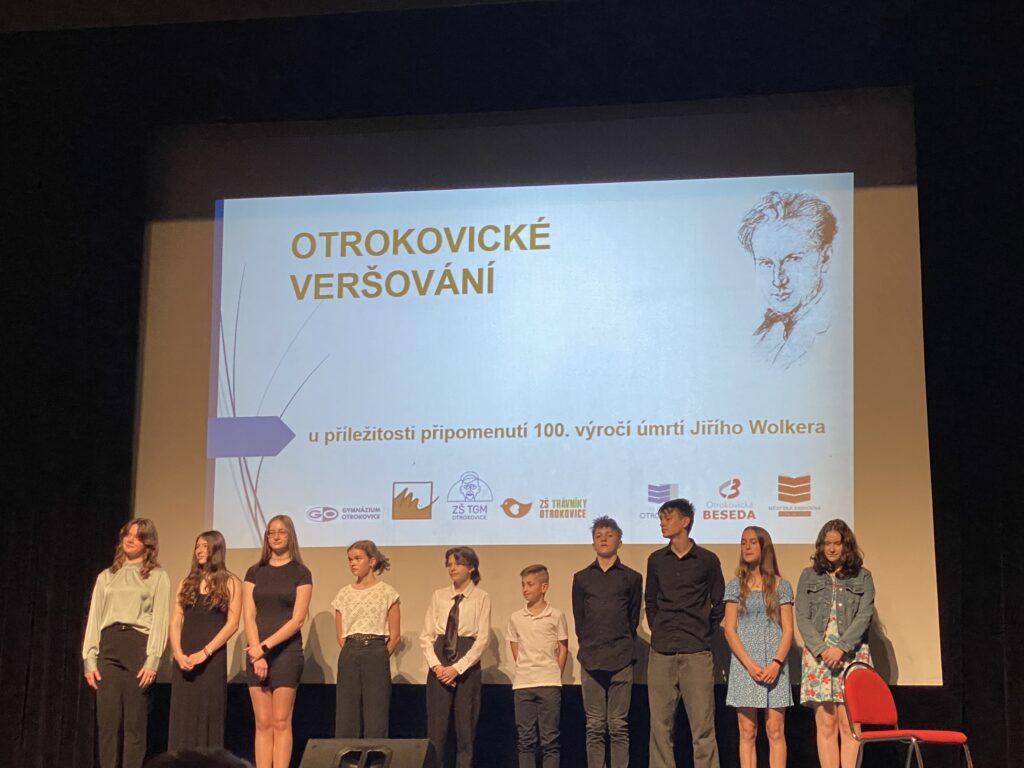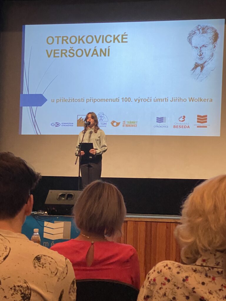 V úterý 9. 4. 2024 proběhla v sále Otrokovické Besedy recitační soutěž u příležitosti 100. výročí úmrtí básníka Jiřího Wolkera. Naši školu reprezentovaly Karolína Kasperová, Laura Mikošková a Lucie Rýparová. Nejúspěšnější recitátorkou naší školy byla vyhlášena Lucie Rýparová.