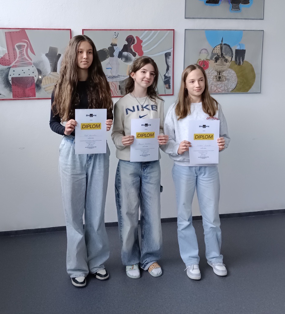 Studentky Anežka Zívalíková z tercie a Nicol Alexandru ze sekundy získaly 3. místo každá ve své kategorii v krajském kole konverzační soutěže ve francouzském jazyce.