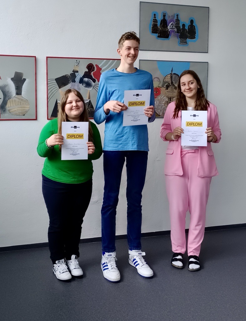 Studentky Anežka Zívalíková z tercie a Nicol Alexandru ze sekundy získaly 3. místo každá ve své kategorii v krajském kole konverzační soutěže ve francouzském jazyce.